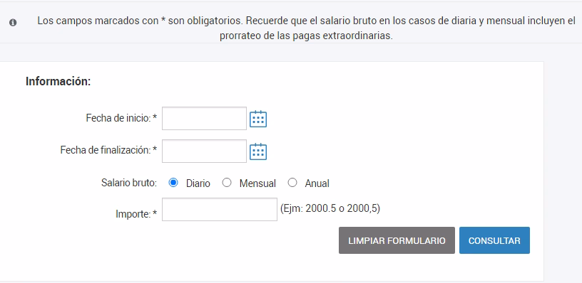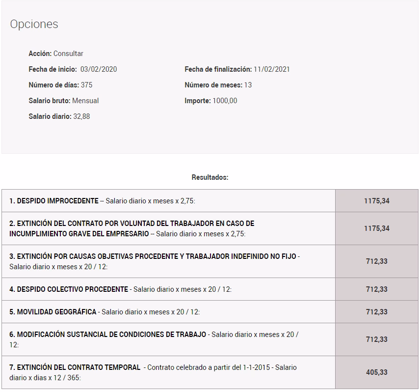 Al entrar en el enlace https://www.poderjudicial.es/cgpj/es/Servicios/Utilidades/Calculo-de-indemnizaciones-por-extincion-de-contrato-de-trabajo/ debes introducir 3 datos, la fecha de inicio del contrato (cuando empezaste), la fecha de finalización (cuando terminaste) y el salario (ya sea diario, mensual o anual). Debe introducirse el salario bruto y si es mensual, prorratear las pagas extraordinarias e incluirlas.
