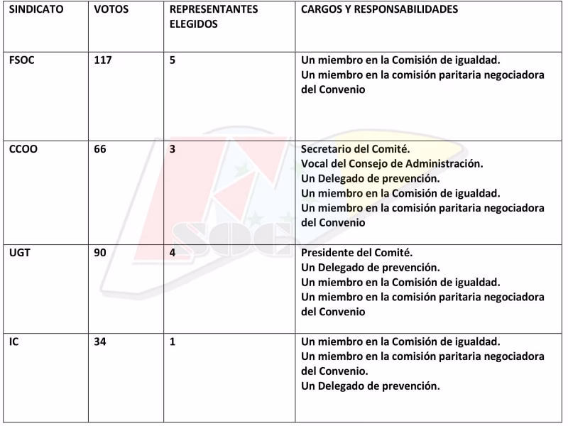 Los cargos de responsabilidad no se repiten, a excepción del único Representante de IC, que como premio a su fidelidad a CCOO y UGT le han otorgado tres.